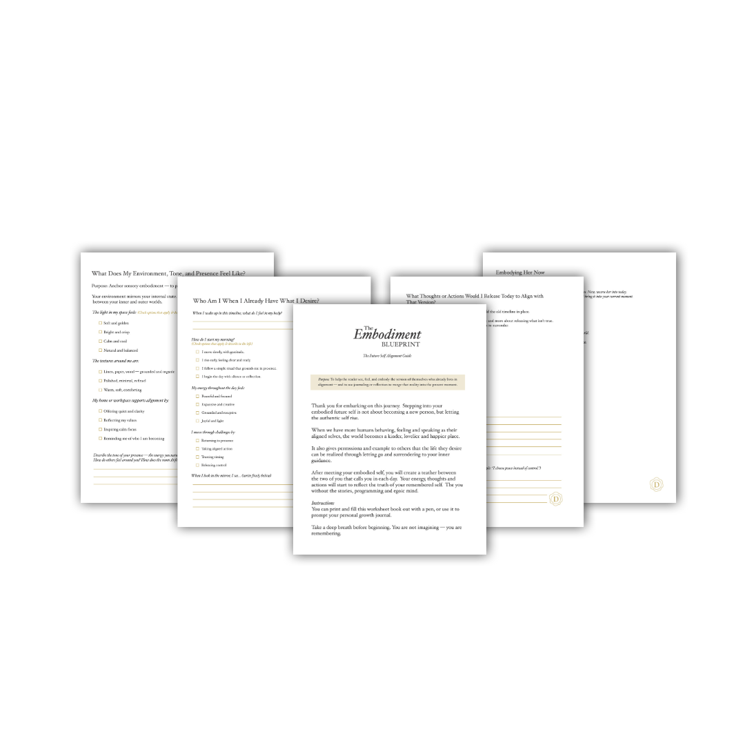 Explore our free Future Self Alignment Guide: an elegant workbook of prompts and printable pages designed to help you embody your next-level self with presence and grace.
